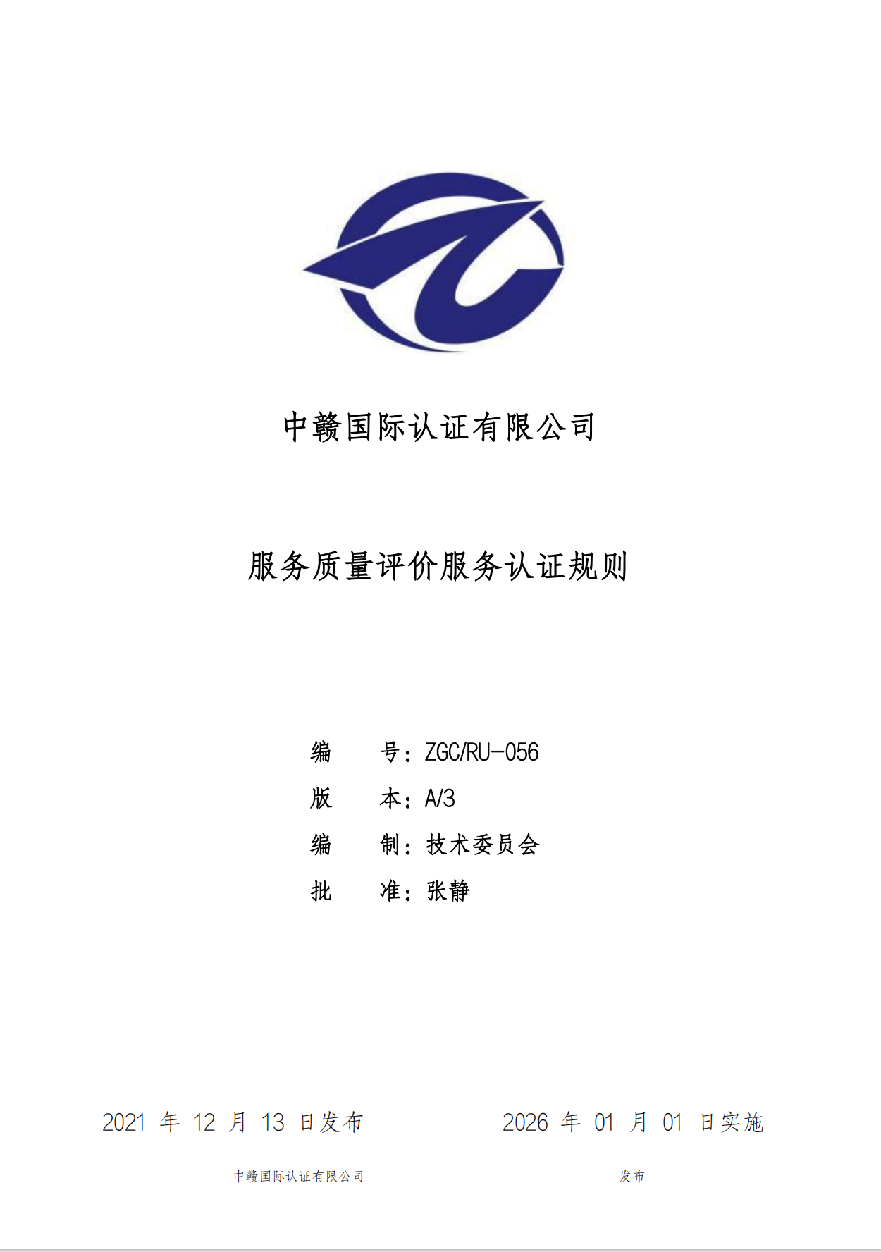 本次公示的认证规则版权归属于中赣国际认证有限公司(以下简称“本机构”),本机构享有最终解释权。未经本机构书面许可,任何组织或个人不得以任何形式全部或部分使用、复制或传播本公告涉及的认证规则信息(法律法规另有规定的除外)。