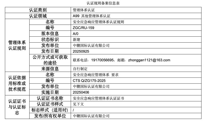 本次公示的认证规则版权归属于中赣国际认证有限公司(以下简称“本机构”),本机构享有最终解释权。未经本机构书面许可,任何组织或个人不得以任何形式全部或部分使用、复制或传播本公告涉及的认证规则信息(法律法规另有规定的除外)。