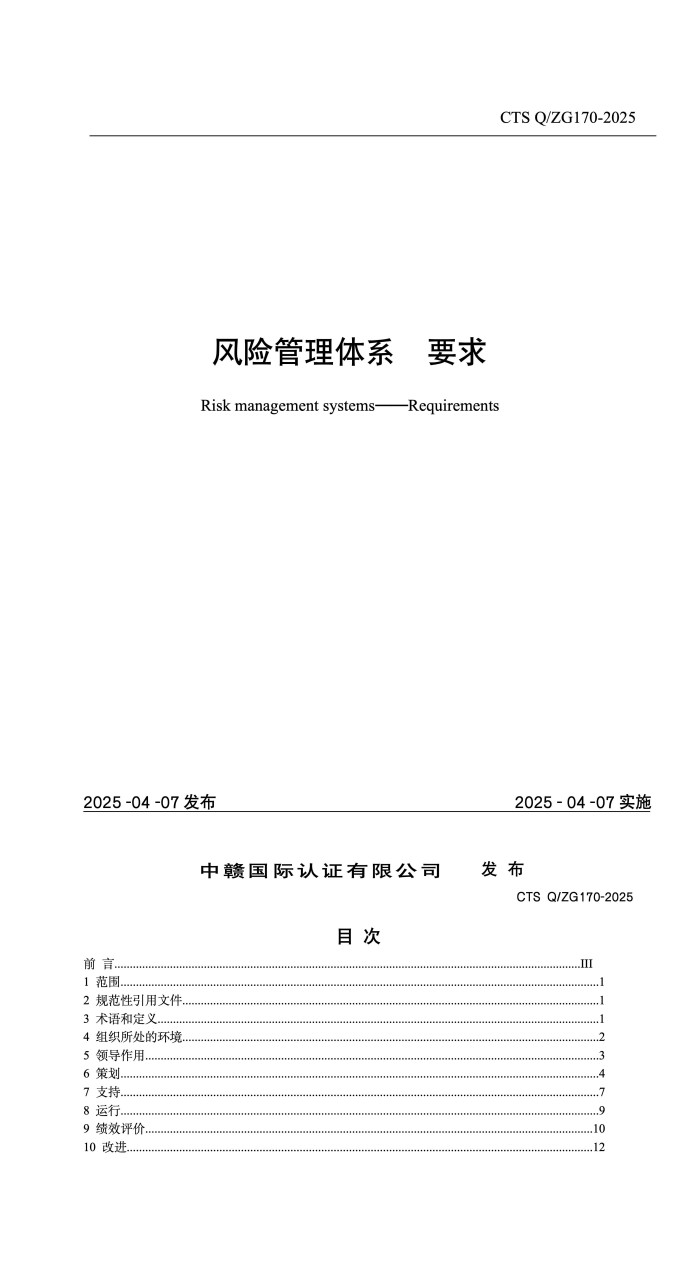 风险管理体系认证依据
