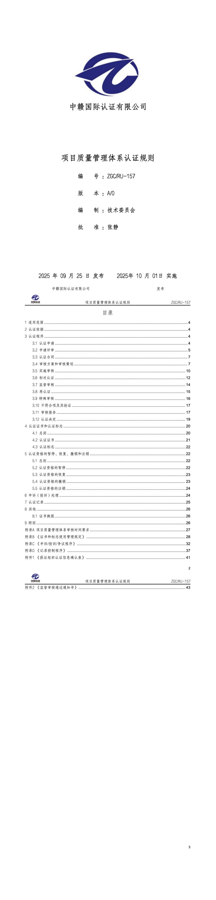 认证规则封面及目录: