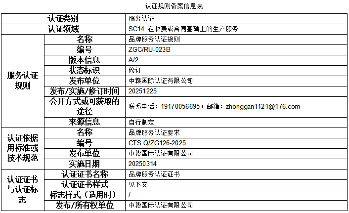 本次公示的认证规则版权归属于中赣国际认证有限公司(以下简称“本机构”),本机构享有最终解释权。未经本机构书面许可,任何组织或个人不得以任何形式全部或部分使用、复制或传播本公告涉及的认证规则信息(法律法规另有规定的除外)。