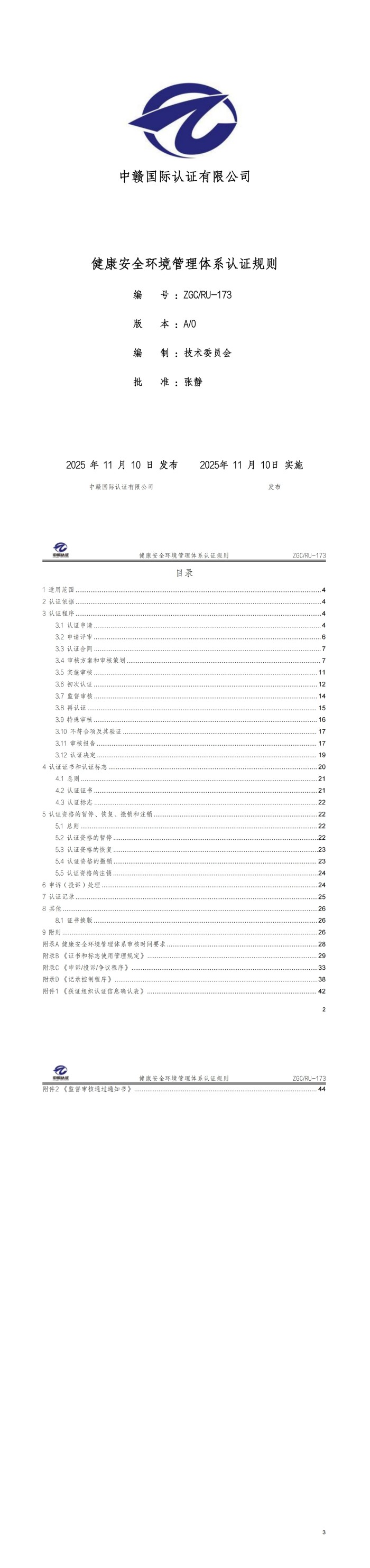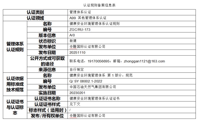 本次公示的认证规则版权归属于中赣国际认证有限公司(以下简称“本机构”),本机构享有最终解释权。未经本机构书面许可,任何组织或个人不得以任何形式全部或部分使用、复制或传播本公告涉及的认证规则信息(法律法规另有规定的除外)。