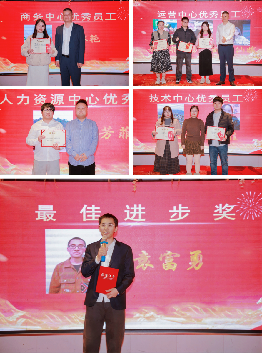 本次年会设置了多轮颁奖环节,对过去一年表现突出的员工进行表彰。共有20位同事获此殊荣。他们在各自岗位上恪尽职守、奋勇争先,用行动诠释责任,用实力书写担当。