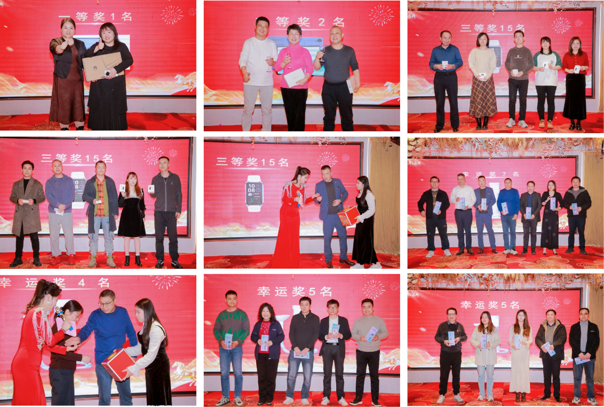 年会设置了丰富的抽奖环节,从幸运奖到终极大奖,惊喜层层升级。多轮抽奖让现场惊喜连连,福气满满。