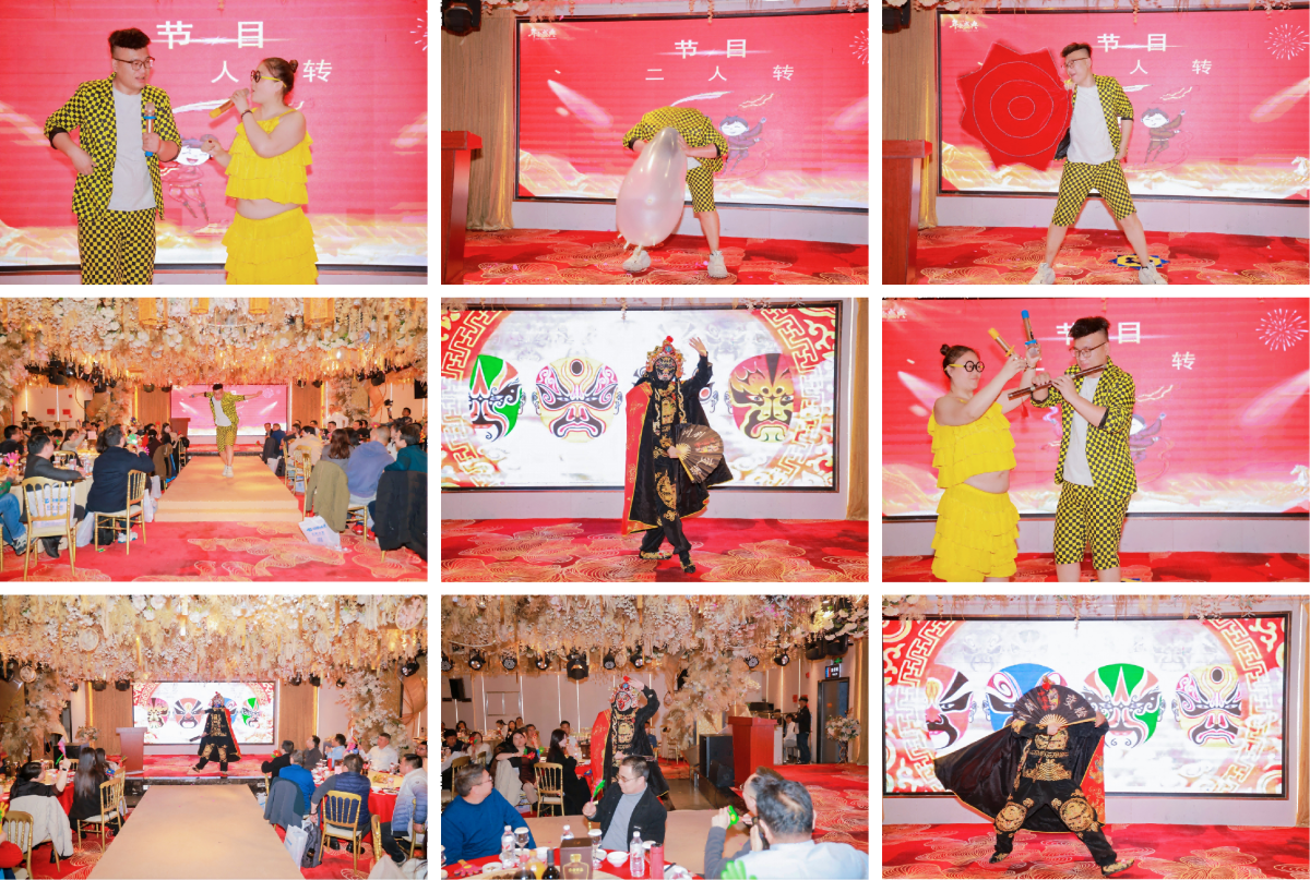 年会现场,极具中国特色的川剧变脸表演精彩绝伦,表演者一秒切换面容,变幻莫测,赢得阵阵掌声;诙谐幽默的二人转表演接地气、节奏欢快,让现场笑声不断。